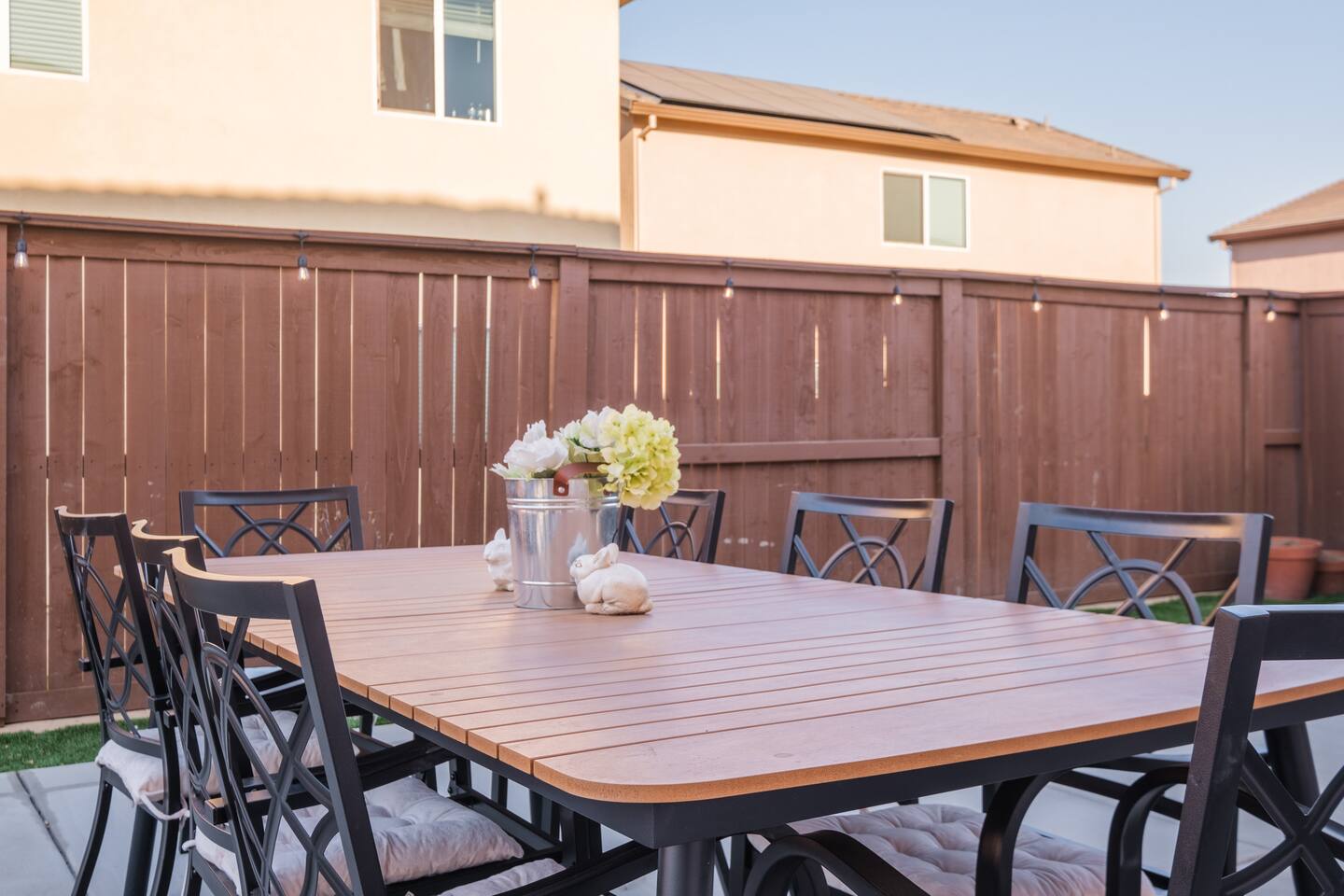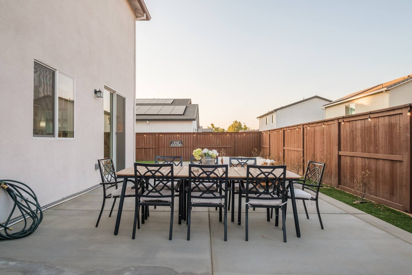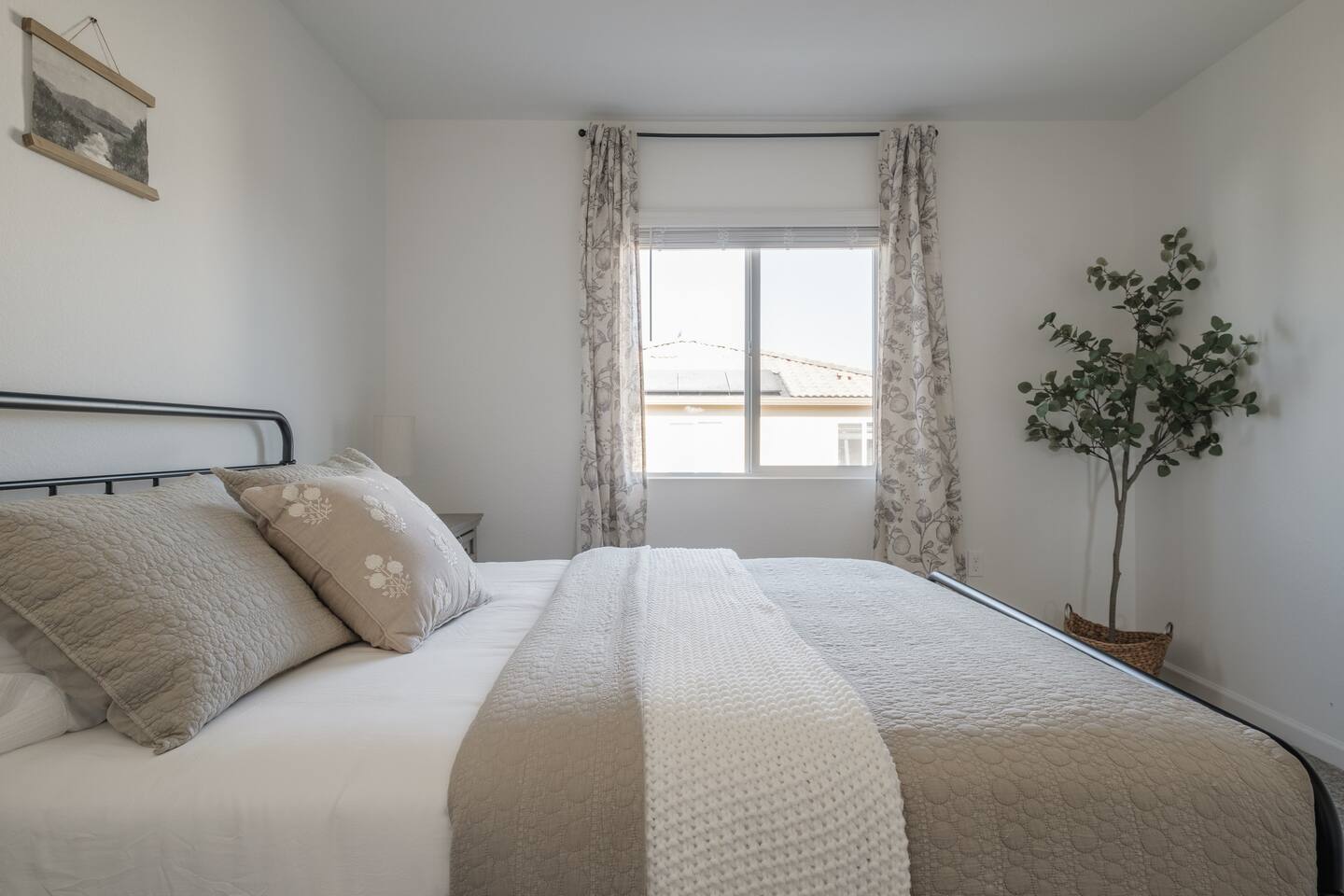 The home has a separate en-suite that may or may not be rented during your stay. It can be included as a Fifth Bedroom as you can see in the photos so the whole property is yours. We would price it very competitively at an extra $45 per night for the extra fifth bedroom. This en suite would typically rent on its own for $75-90 per night. Please reach out with any questions, thank you! ⭑Plan Your Perfect Event with Us!⭑ Hosting a baptism, wedding, or family celebration? We would be happy to discuss your event in more detail. Home Features: ⭑Master Bedroom⭑ ✔ Spacious master bedroom with a plush cal king bed ✔ En-suite bathroom featuring amenities such as a bathtub and Stand Alone shower, shampoo, body soap, conditioner, and hot water. ✔ Enclosed toilet for privacy ✔ His and hers sinks and spacious bathroom counter ✔ Walk in huge master closet with baby crib ✔Queen air mattress ⭑First Bedroom⭑ ✔ Cozy queen bed perfect for relaxation. ✔ Ample closet space ⭑Second Bedroom⭑ ✔ Cozy queen bed perfect for relaxation. ✔ Ample closet space ⭑Third Bedroom⭑ ✔ Queen mattress pullout sofa ✔ Extra Linens and pillows ✔ Ample closet space ✔ Diaper and Wipes provided in closet ✔ Right next to the bathroom Ensuite-with kitchenette ✔65-inch HDTV with Amazon Prime Video, Hulu, Netflix access. ✔ Comfy feather couch seats 4 ✔ Kitchenette with dish ware, utensils ,sink and refrigerator ✔ Enclose bathroom with stand in shower ✔ Private bedroom with Queen bed ✔ Spacious closet ✔ Own side door access with smart lock ⭑Living Room⭑ ✔ Bright and airy space with super comfy feather couch cushions, seats 8. ✔ 65-inch HDTV with Amazon Prime Video, Hulu, Netflix your login accessable. ✔ Access to the backyard through the sliding door Kitchen and Dining Area⭑ ✔ Fully equipped kitchen with gas stove, refrigerator, microwave, and dishwasher. ✔ Cooking basics, including pots, pans, oil, salt, and pepper. ✔ Coffee maker, blender, and toaster. ✔ Elegant dining table for family meals. ✔ Fridge, freezer, wine glasses, barbecue utensils, and dining table. ⭑Bathrooms⭑ ✔ Clean bathrooms with bathtubs and showers. ✔ Complimentary toiletries including shampoo, conditioner, body soap ✔ Hair dryer, fresh towels, and cleaning products provided. ⭑Outdoor Space⭑ ✔ Private patio and fully fenced backyard. ✔ BBQ grill (gas), outdoor dining area for 8 ✔ Fire pit with family seating in back and front porch ✔ Kids backyard play area with turf