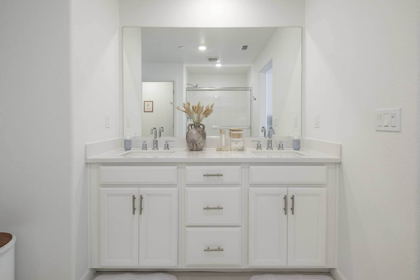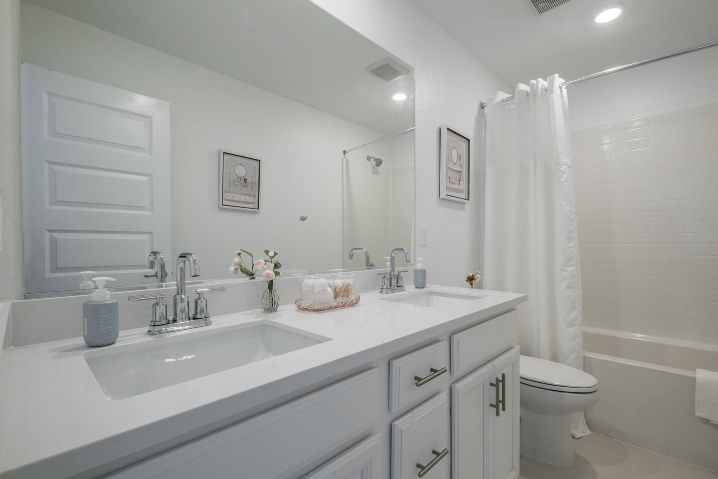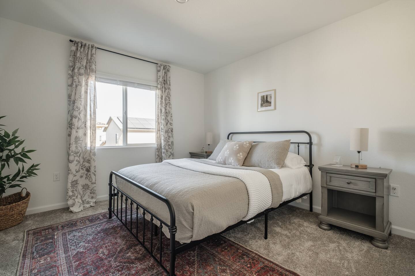 The home has a separate en-suite that may or may not be rented during your stay. It can be included as a Fifth Bedroom as you can see in the photos so the whole property is yours. We would price it very competitively at an extra $45 per night for the extra fifth bedroom. This en suite would typically rent on its own for $75-90 per night. Please reach out with any questions, thank you! ⭑Plan Your Perfect Event with Us!⭑ Hosting a baptism, wedding, or family celebration? We would be happy to discuss your event in more detail. Home Features: ⭑Master Bedroom⭑ ✔ Spacious master bedroom with a plush cal king bed ✔ En-suite bathroom featuring amenities such as a bathtub and Stand Alone shower, shampoo, body soap, conditioner, and hot water. ✔ Enclosed toilet for privacy ✔ His and hers sinks and spacious bathroom counter ✔ Walk in huge master closet with baby crib ✔Queen air mattress ⭑First Bedroom⭑ ✔ Cozy queen bed perfect for relaxation. ✔ Ample closet space ⭑Second Bedroom⭑ ✔ Cozy queen bed perfect for relaxation. ✔ Ample closet space ⭑Third Bedroom⭑ ✔ Queen mattress pullout sofa ✔ Extra Linens and pillows ✔ Ample closet space ✔ Diaper and Wipes provided in closet ✔ Right next to the bathroom Ensuite-with kitchenette ✔65-inch HDTV with Amazon Prime Video, Hulu, Netflix access. ✔ Comfy feather couch seats 4 ✔ Kitchenette with dish ware, utensils ,sink and refrigerator ✔ Enclose bathroom with stand in shower ✔ Private bedroom with Queen bed ✔ Spacious closet ✔ Own side door access with smart lock ⭑Living Room⭑ ✔ Bright and airy space with super comfy feather couch cushions, seats 8. ✔ 65-inch HDTV with Amazon Prime Video, Hulu, Netflix your login accessable. ✔ Access to the backyard through the sliding door Kitchen and Dining Area⭑ ✔ Fully equipped kitchen with gas stove, refrigerator, microwave, and dishwasher. ✔ Cooking basics, including pots, pans, oil, salt, and pepper. ✔ Coffee maker, blender, and toaster. ✔ Elegant dining table for family meals. ✔ Fridge, freezer, wine glasses, barbecue utensils, and dining table. ⭑Bathrooms⭑ ✔ Clean bathrooms with bathtubs and showers. ✔ Complimentary toiletries including shampoo, conditioner, body soap ✔ Hair dryer, fresh towels, and cleaning products provided. ⭑Outdoor Space⭑ ✔ Private patio and fully fenced backyard. ✔ BBQ grill (gas), outdoor dining area for 8 ✔ Fire pit with family seating in back and front porch ✔ Kids backyard play area with turf