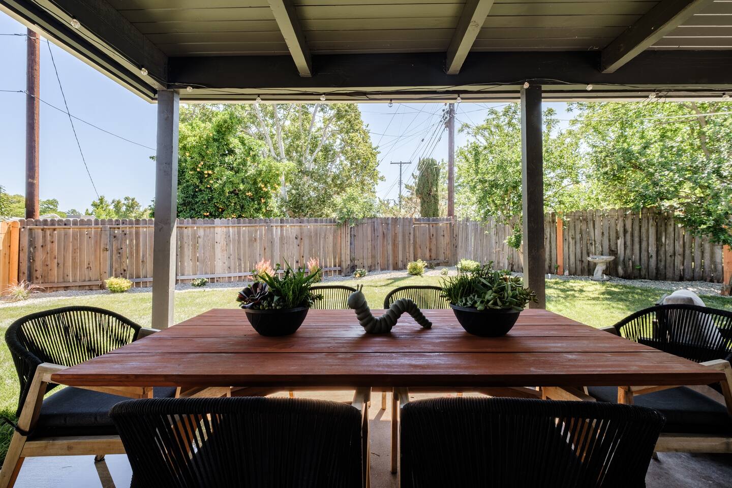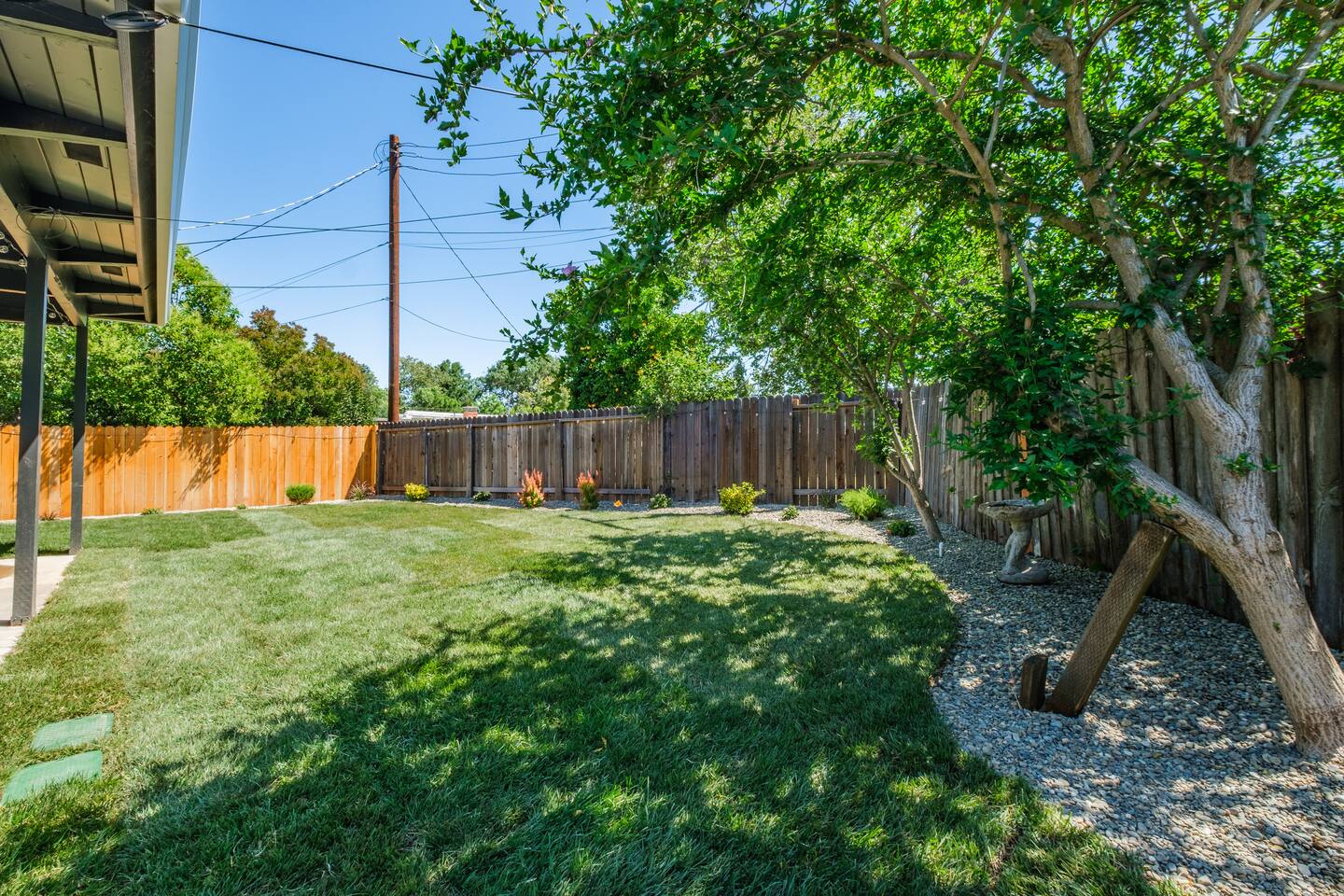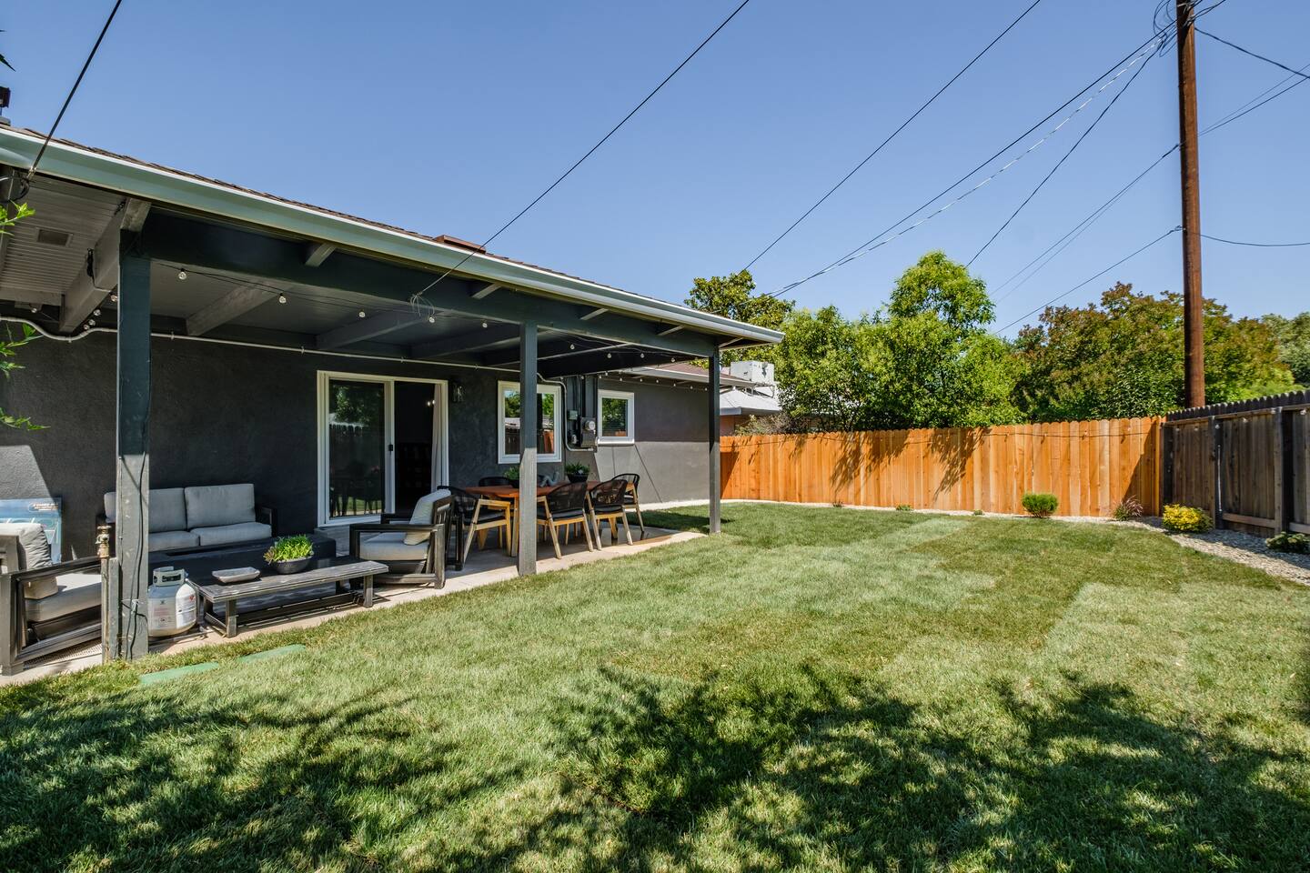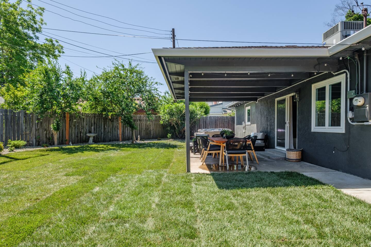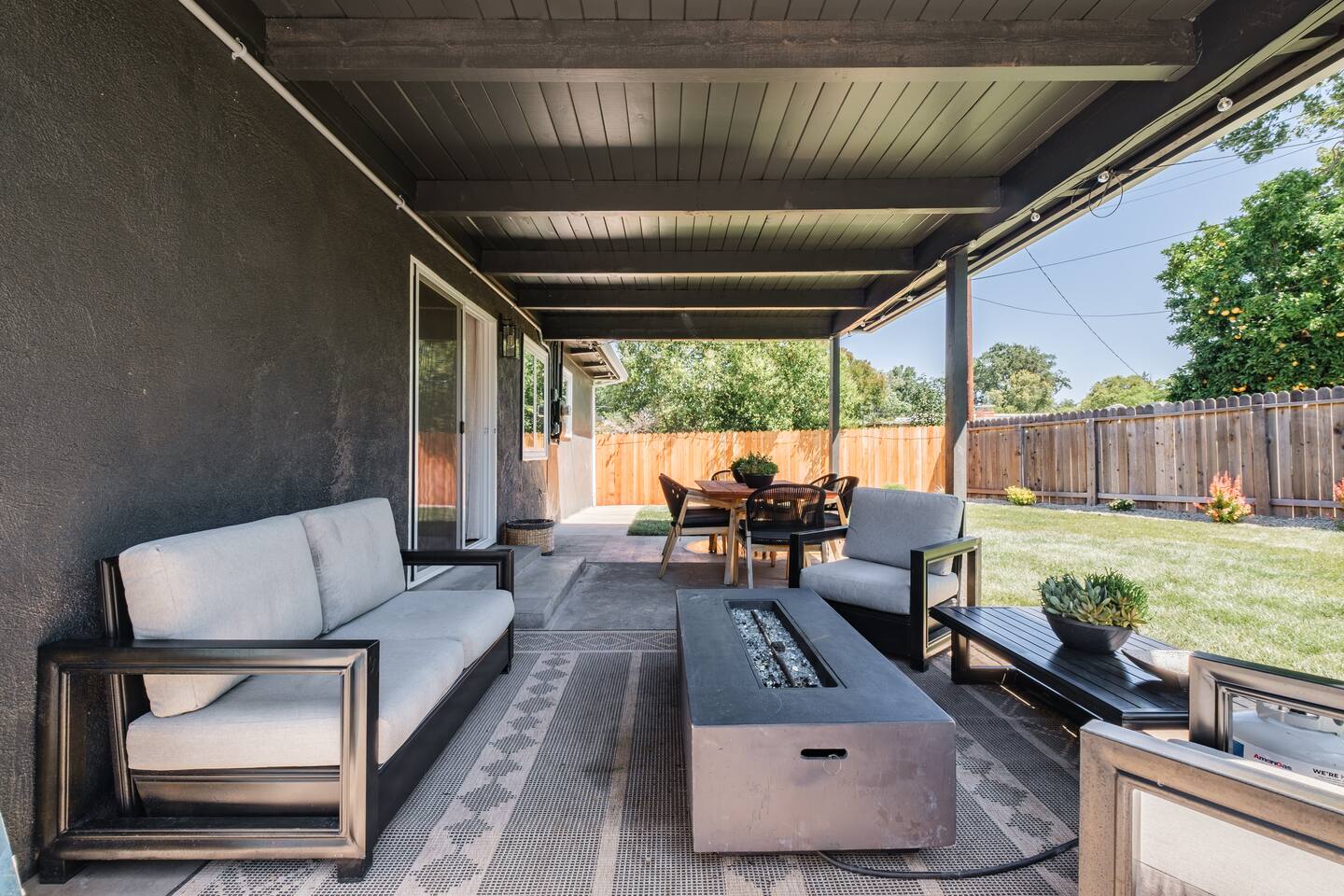 📍 The Neighborhood: The Lloyd offers the comfort of a quiet, tree-lined street with deep community roots. You’re minutes from Sacramento’s cultural pulse — yet tucked away just enough to enjoy a peaceful, local vibe. Just a 5-minute walk away, Howe Community Park spans 38 acres and offers a scenic 1 mile walking path, a dog park, sports facilities, picnic and gathering areas, playgrounds, and fishing piers. DETAILS: 🛏️ Sleeps 10 Comfortably Across 3 Bedrooms + Bonus Space (King, Full & Full, King, Sofa Bed) - Primary Suite – Retreat to a King-size bed, newly renovated spa-style en-suite bathroom, and private dual-door entry for added peace. Pack ’n Play provided, along with a small selection of diapers and wipes for those little moments when you need them. - Double-Up Room – Cozy and bright, this quaint room features two full-size beds—perfect for families, kids, or friends sharing the space. Recently updated for comfort, it includes a smart TV so you can easily log in and stream your favorite shows—just like home. - Third Bedroom – Features a hybrid king-size bed with soft tones and modern touches that create the perfect wind-down vibe. - Living Room – Our sofa sleeper easily transforms into an extra bed, ideal for teens, tag-along guests, or that unexpected snooze after movie night ________________________________________________________________________________________________ 🚿 Bathrooms: Bathroom 1 (En-suite): Standalone glass shower with modern finishes Bathroom 2: Combo shower and soaking tub — great for families ________________________________________________________________________________________________ 💪 Dedicated Wellness Garage – This isn't just a garage —we believe travel should recharge your soul, not just your phone. #StayWellAtLloyd 🏋️♂️ Home Gym: Squat rack, cables, bench, and free weights 🧊 Cold Plunge: Cools to 47°F with recirculating filtration- can add ice to get the extra BRRR 🥶 🔥 Sauna: Dry heat with light therapy, reaches up to 140°F ________________________________________________________________________________________________ 🍳 Kitchen: - Modern gas stove with oven and microwave - Brand new appliances including fridge with freezer and filtered water, plus ice maker - Basic spices and cooking oil stocked for your convenience - Complimentary coffee ( pods & grounds) provided, ready to brew in our Keurig ☕ - Froth machine available for cappuccinos and lattes — just bring your favorite creamer! ________________________________________________________________________________________________ 🛋️ Living + Dining Area: Step into an open-concept feel where the living, dining, and kitchen areas flow seamlessly together Windows fill the space with natural light, and a ceiling fan keeps the vibe cool and breezy. Slide open the patio door and discover your own backyard escape — fully fenced with lush green grass, glowing tea lights 🌟, and plenty of space to dine, unwind, or enjoy a little outdoor fun with family and friends 65-inch smart TV with full app access for streaming your favorite shows and movies — plus complimentary channels and films via apps Stunning walnut wood dining table seats 6 with two extendable spacers for larger gatherings or special meals together ( available upon request) ________________________________________________________________________________________________ 🌿 Front & Backyard Amenities: Beautifully newly manicured yards with space for both relaxation and play - Outdoor dining (seats 6) - Lounging furniture under covered back patio with elongated fire pit for cozy nights and all weather condtions - Four-person fire pit area in front yard with low profile loungers– perfect for evening s’mores or wine chats - Propane BBQ for outdoor cooking ( 1 tank provided complimentary) We encourage guests and families to make the most of the outdoor space — it’s a big part of what makes The Lloyd special _________________________________________________________________________________________________ 🪴Living Plants for Wellness: We’ve thoughtfully added a variety of live plants throughout the home to naturally improve air quality and create a calm, refreshing atmosphere: Pothos and Snake Plant — Known for filtering out toxins and boosting oxygen levels, helping to keep the air clean and fresh. Peacock Plant (Calathea) — With its beautiful patterned leaves, it adds humidity to the air and enhances comfort. Dracaena fragrans (Corn Plant) — Effective at removing indoor pollutants like formaldehyde and benzene, while adding lush greenery with minimal care. These plants not only purify the air but also bring a touch of nature indoors, promoting relaxation and overall wellness during your stay.🌱 _________________________________________________________________________________________________ 🔒 Smart & Safe Tech Features: Wi-Fi Controlled Ecobee Thermostat – for optimal comfort Level Lock Smart Lock – keyless entry made simple Noise + Air Monitoring – smart sensors detect smoke, CO₂ & noise wave length past certain decibel 24-Hour Exterior Cameras – one on Ring doorbell, one overlooking driveway (No interior cameras – your privacy is fully respected) Fire Safety & First Aid Supplies – extinguishers, fire blankets and first aid kit under the kitchen sink 🎉 Upcoming Events & Attractions (2025–2027) 1. Cal Expo – Just one exit away! Home to the California State Fair (May- July), seasonal festivals, live shows, and year-round events — you’re minutes from the action 🎡🎟️ 2. Sol Blume Festival: Celebrate R&B, soul, and hip-hop at this annual festival in Discovery Park, attracting music lovers from all over. 3. Aftershock & GoldenSky Festivals: Rock out at Aftershock, California's premier rock festival, and enjoy country vibes at GoldenSky, both held annually in Discovery Park. ( October) 4. 🎨 Wide Open Walls: Experience the livin