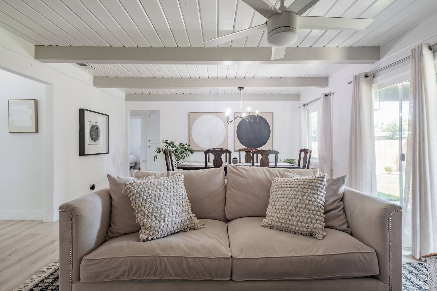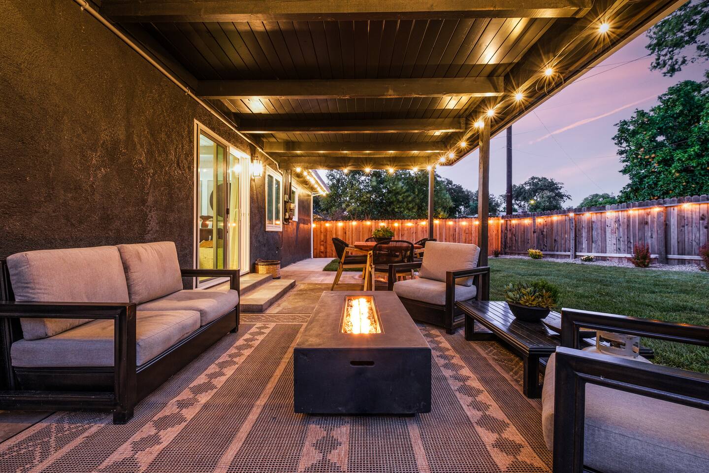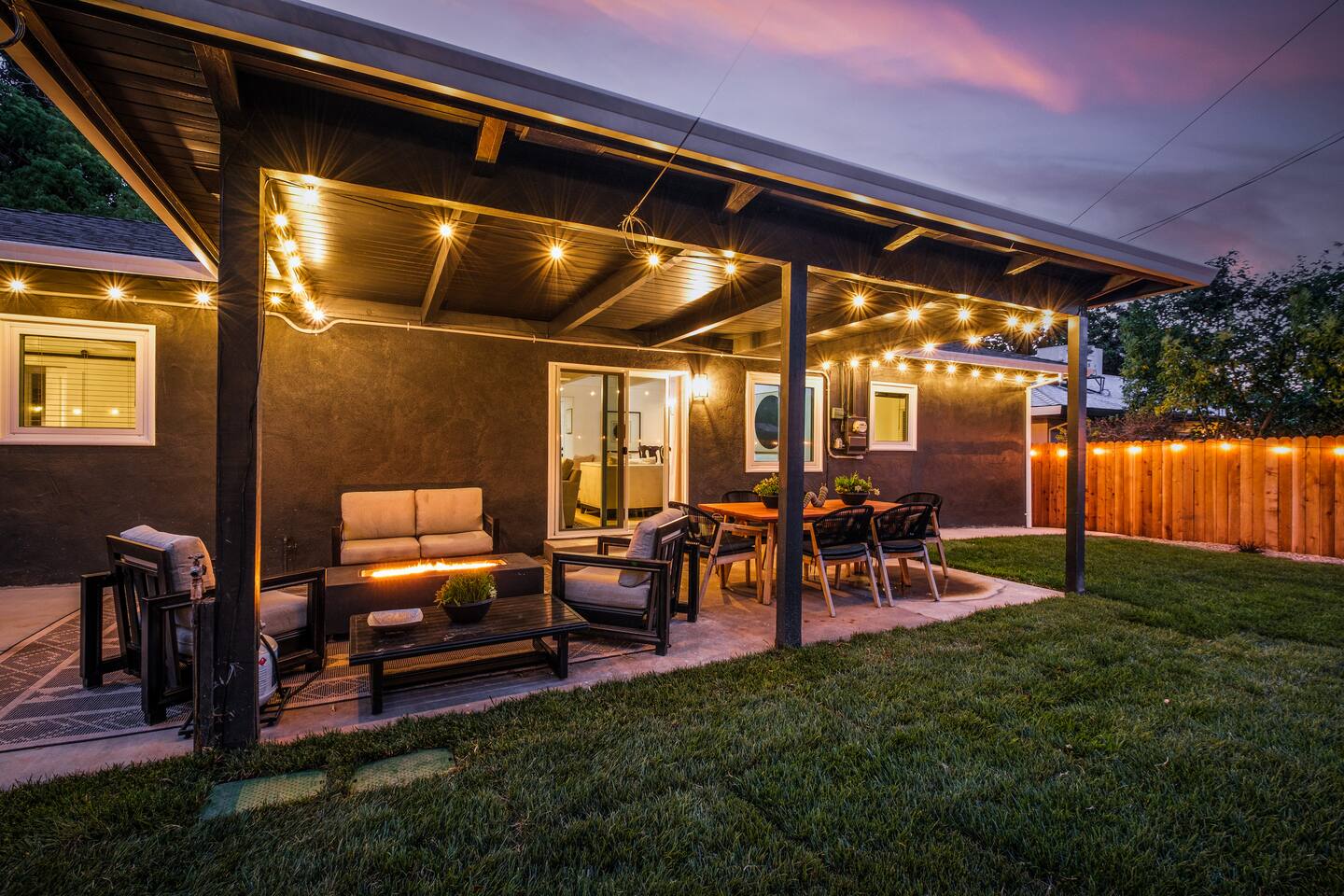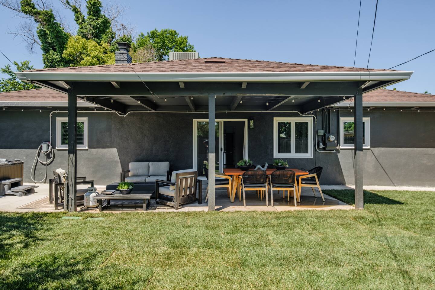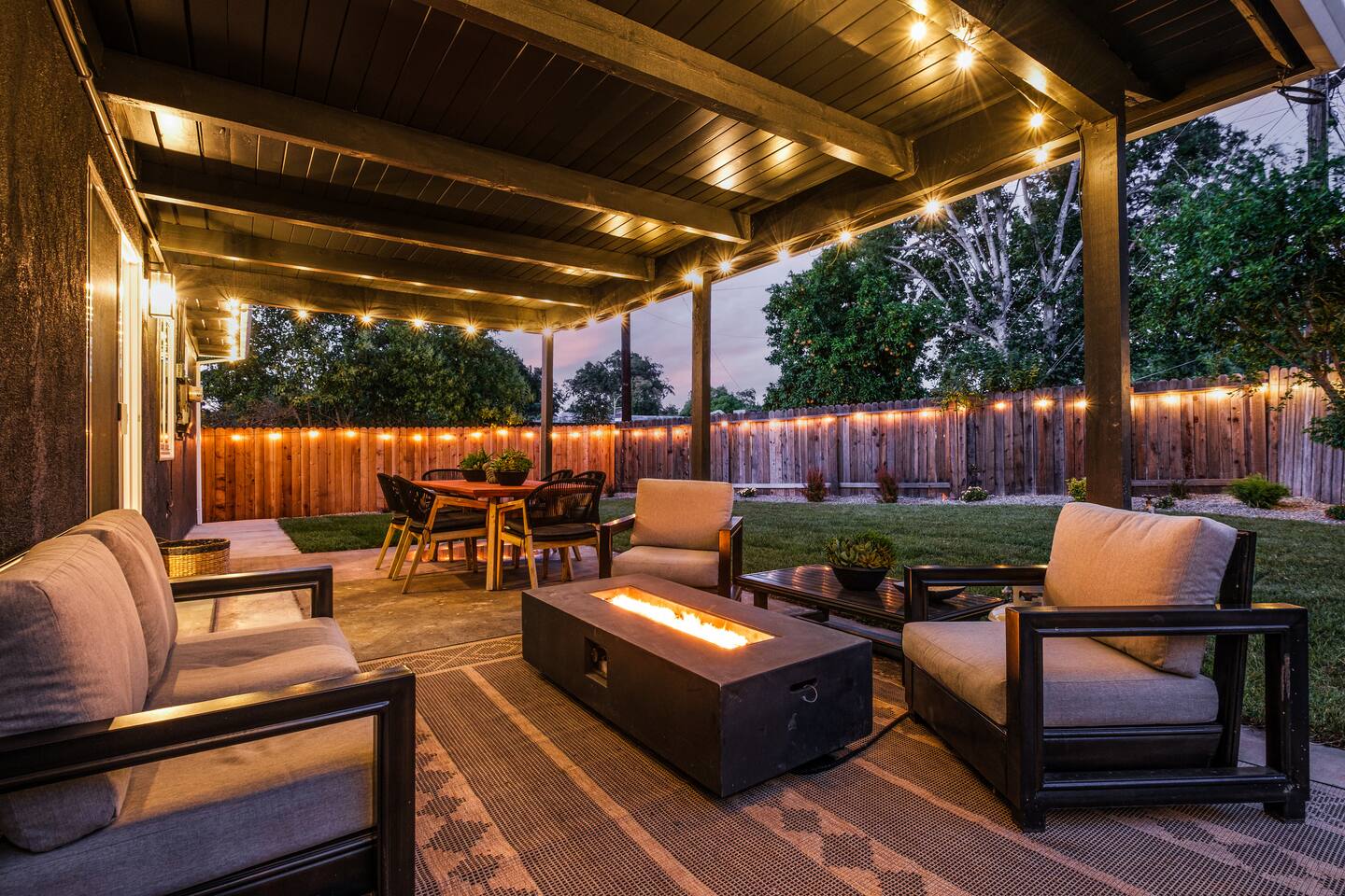 📍 The Neighborhood: The Lloyd offers the comfort of a quiet, tree-lined street with deep community roots. You’re minutes from Sacramento’s cultural pulse — yet tucked away just enough to enjoy a peaceful, local vibe. Just a 5-minute walk away, Howe Community Park spans 38 acres and offers a scenic 1 mile walking path, a dog park, sports facilities, picnic and gathering areas, playgrounds, and fishing piers. DETAILS: 🛏️ Sleeps 10 Comfortably Across 3 Bedrooms + Bonus Space (King, Full & Full, King, Sofa Bed) - Primary Suite – Retreat to a King-size bed, newly renovated spa-style en-suite bathroom, and private dual-door entry for added peace. Pack ’n Play provided, along with a small selection of diapers and wipes for those little moments when you need them. - Double-Up Room – Cozy and bright, this quaint room features two full-size beds—perfect for families, kids, or friends sharing the space. Recently updated for comfort, it includes a smart TV so you can easily log in and stream your favorite shows—just like home. - Third Bedroom – Features a hybrid king-size bed with soft tones and modern touches that create the perfect wind-down vibe. - Living Room – Our sofa sleeper easily transforms into an extra bed, ideal for teens, tag-along guests, or that unexpected snooze after movie night ________________________________________________________________________________________________ 🚿 Bathrooms: Bathroom 1 (En-suite): Standalone glass shower with modern finishes Bathroom 2: Combo shower and soaking tub — great for families ________________________________________________________________________________________________ 💪 Dedicated Wellness Garage – This isn't just a garage —we believe travel should recharge your soul, not just your phone. #StayWellAtLloyd 🏋️♂️ Home Gym: Squat rack, cables, bench, and free weights 🧊 Cold Plunge: Cools to 47°F with recirculating filtration- can add ice to get the extra BRRR 🥶 🔥 Sauna: Dry heat with light therapy, reaches up to 140°F ________________________________________________________________________________________________ 🍳 Kitchen: - Modern gas stove with oven and microwave - Brand new appliances including fridge with freezer and filtered water, plus ice maker - Basic spices and cooking oil stocked for your convenience - Complimentary coffee ( pods & grounds) provided, ready to brew in our Keurig ☕ - Froth machine available for cappuccinos and lattes — just bring your favorite creamer! ________________________________________________________________________________________________ 🛋️ Living + Dining Area: Step into an open-concept feel where the living, dining, and kitchen areas flow seamlessly together Windows fill the space with natural light, and a ceiling fan keeps the vibe cool and breezy. Slide open the patio door and discover your own backyard escape — fully fenced with lush green grass, glowing tea lights 🌟, and plenty of space to dine, unwind, or enjoy a little outdoor fun with family and friends 65-inch smart TV with full app access for streaming your favorite shows and movies — plus complimentary channels and films via apps Stunning walnut wood dining table seats 6 with two extendable spacers for larger gatherings or special meals together ( available upon request) ________________________________________________________________________________________________ 🌿 Front & Backyard Amenities: Beautifully newly manicured yards with space for both relaxation and play - Outdoor dining (seats 6) - Lounging furniture under covered back patio with elongated fire pit for cozy nights and all weather condtions - Four-person fire pit area in front yard with low profile loungers– perfect for evening s’mores or wine chats - Propane BBQ for outdoor cooking ( 1 tank provided complimentary) We encourage guests and families to make the most of the outdoor space — it’s a big part of what makes The Lloyd special _________________________________________________________________________________________________ 🪴Living Plants for Wellness: We’ve thoughtfully added a variety of live plants throughout the home to naturally improve air quality and create a calm, refreshing atmosphere: Pothos and Snake Plant — Known for filtering out toxins and boosting oxygen levels, helping to keep the air clean and fresh. Peacock Plant (Calathea) — With its beautiful patterned leaves, it adds humidity to the air and enhances comfort. Dracaena fragrans (Corn Plant) — Effective at removing indoor pollutants like formaldehyde and benzene, while adding lush greenery with minimal care. These plants not only purify the air but also bring a touch of nature indoors, promoting relaxation and overall wellness during your stay.🌱 _________________________________________________________________________________________________ 🔒 Smart & Safe Tech Features: Wi-Fi Controlled Ecobee Thermostat – for optimal comfort Level Lock Smart Lock – keyless entry made simple Noise + Air Monitoring – smart sensors detect smoke, CO₂ & noise wave length past certain decibel 24-Hour Exterior Cameras – one on Ring doorbell, one overlooking driveway (No interior cameras – your privacy is fully respected) Fire Safety & First Aid Supplies – extinguishers, fire blankets and first aid kit under the kitchen sink 🎉 Upcoming Events & Attractions (2025–2027) 1. Cal Expo – Just one exit away! Home to the California State Fair (May- July), seasonal festivals, live shows, and year-round events — you’re minutes from the action 🎡🎟️ 2. Sol Blume Festival: Celebrate R&B, soul, and hip-hop at this annual festival in Discovery Park, attracting music lovers from all over. 3. Aftershock & GoldenSky Festivals: Rock out at Aftershock, California's premier rock festival, and enjoy country vibes at GoldenSky, both held annually in Discovery Park. ( October) 4. 🎨 Wide Open Walls: Experience the livin