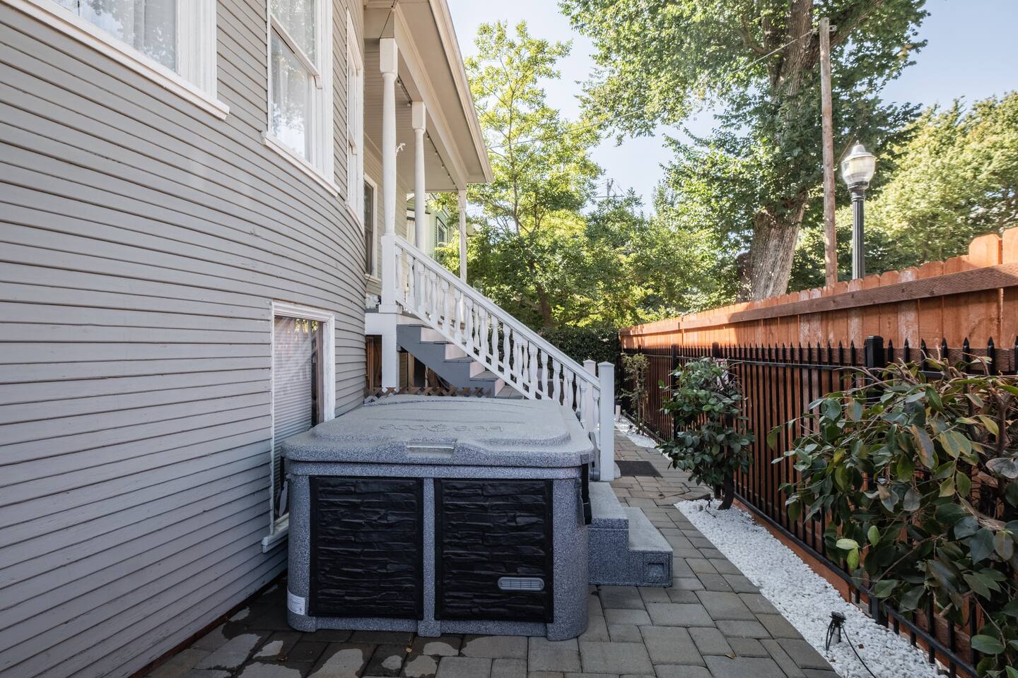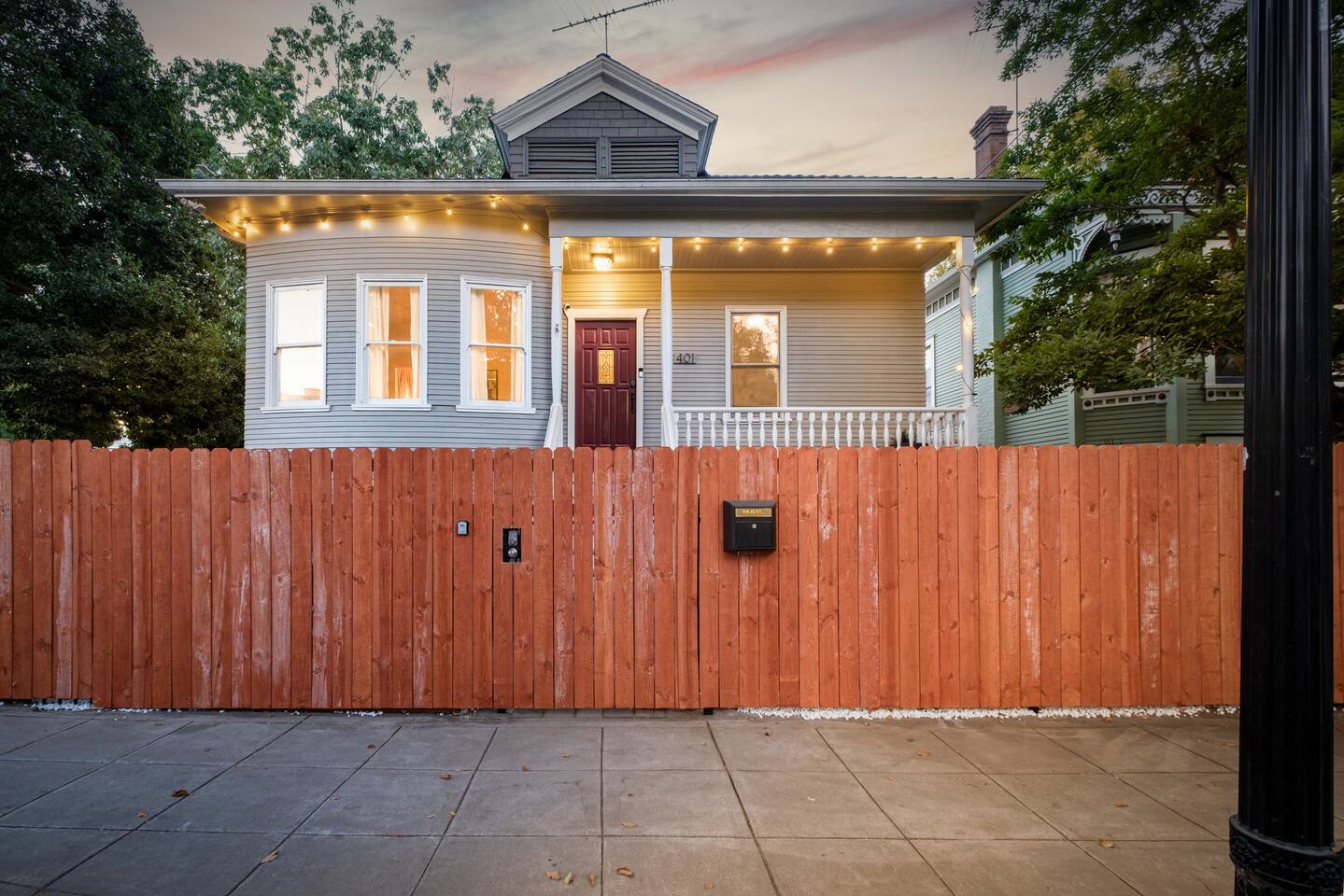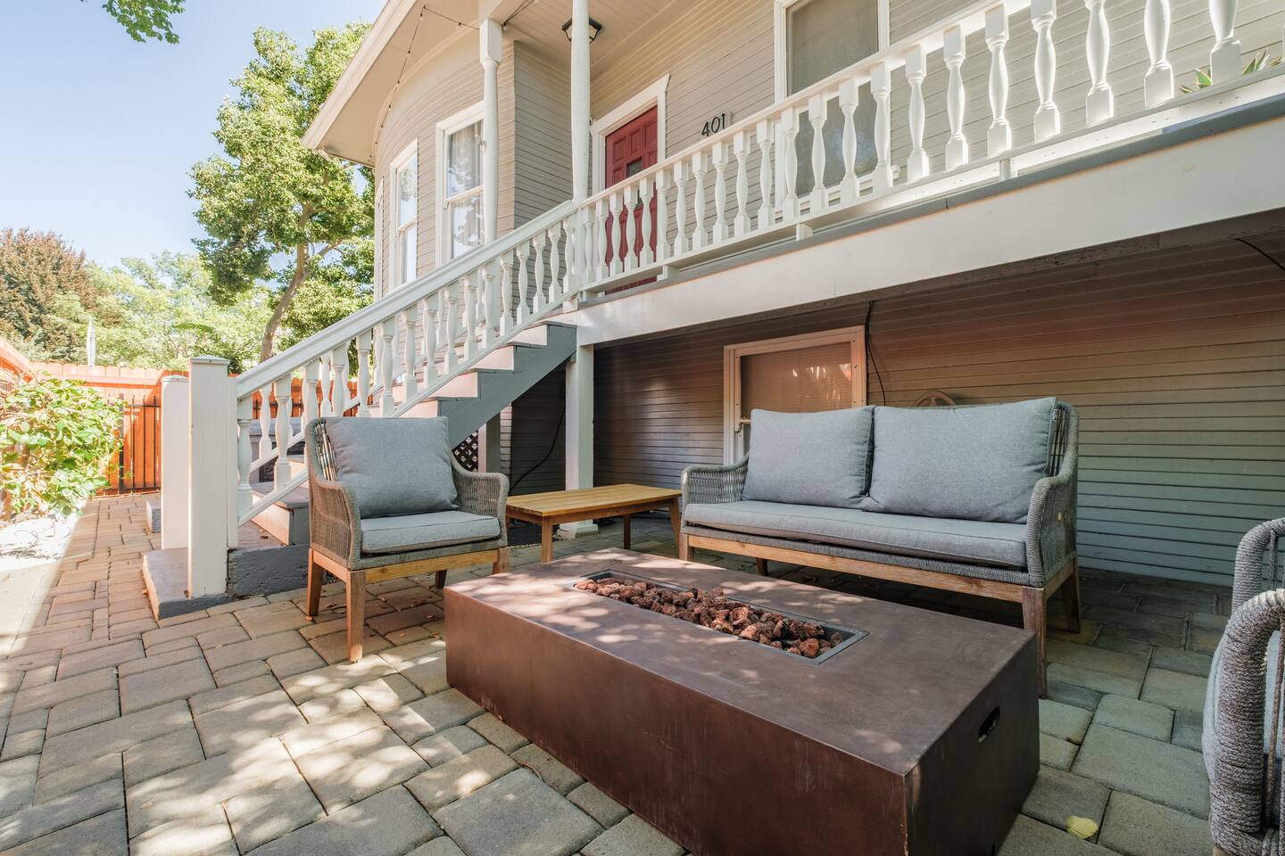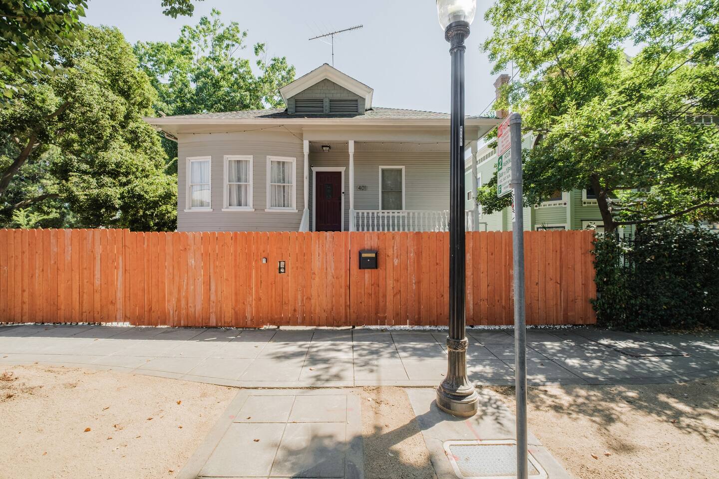 A rare piece of Sacramento history — reimagined for modern comfort. 📍 The Neighborhood Located in Alkali Flat—Sacramento’s oldest residential neighborhood This lovingly restored Edwardian home sleeps 6 guests and sits behind a newly gated wood fence, offering rare privacy in the center of Sacramento’s Historic District. DETAILS: 🛏️ Sleeps 4-6 Comfortably Across 2 Bedrooms + 1 Dual living/ sleeping area (King, Queen Sofa Bed, King ) - Primary and Secondary Bedrooms – Retreat to a King-size hybrid gel bed with medium firmness , black out curtains and each includes a smart TV so you can easily log in and stream your favorite shows—just like home. - Living Room – Our Queen size sofa sleeper easily transforms into an extra bed, ideal for teens, tag-along guests, or that unexpected snooze after a movie night. _______________________________________________________________ Little Luxuries: Every bedroom — plus the living room — features a 55-inch smart TV with full app access so you can stream your favorite shows and movies with your own login. You’ll also enjoy complimentary channels and films via preloaded apps. For optimal comfort, all bedrooms are outfitted with blackout curtains, a sound soother, amber colored adjustable night lights — making it easy to rest well in any season. And Yes, we have a bidet. Because you deserve to feel fresh and just a little extra. ______________________________________________________________ 🪞 Bathroom: The bathroom is quaint but functional, with a classic shower/tub combo and everything you need to feel at home. We’ve included an over-the-sink fold-out mat to give you extra space for styling tools, makeup, or your morning routine - We provide toiletries + feminine products, body towels, wash clothes and face clothes for removing make up. ______________________________________________________________ 🍽 Kitchen Amenities: - Gas stove, oven & microwave - Fridge/freezer (water hookup — filtered water dispenser+ ice cube dispenser) - Cooking oil & basic spices - Complimentary coffee: pods and grounds (brew with Keurig or Drip ☕) Little extras: Froth capabilities for cappuccinos and lattes — just bring your favorite creamer, we provide the sugar and honey ! ______________________________________________________________ 🪑 Dining Area: - 6 seater wood dining table and features a Lazy Susan—making group meals, snacks, or family-style game table— exciting! ______________________________________________________________ Our cozy coffee + tea bar isn’t just for humans—we thought of your furry friends too! Help yourself to K-Cups, ground coffee for pour-over mornings, and a small selection of teas, complete with sugar and honey Your pup? They’ll wake up to snacks + water and food bowl Barista vibes for you. Barkista vibes for them. 🐶☕ _______________________________________________________________ 🔒 Smart & Safe Tech Features: Schlage Smart Lock – keyless entry made simple The home is fully enclosed by a newly constructed wooden fence for added privacy, and features a smart lock with custom code entry for effortless, secure check-ins. Noise + Air Monitoring – smart sensors detect smoke, CO₂ & noise wave length past certain decibel 24-Hour Exterior Cameras – one on Ring doorbell (No interior cameras – your privacy is fully respected) Fire Safety & First Aid Supplies – extinguishers, fire blankets, first air kit all under the kitchen sink. _______________________________________________________________