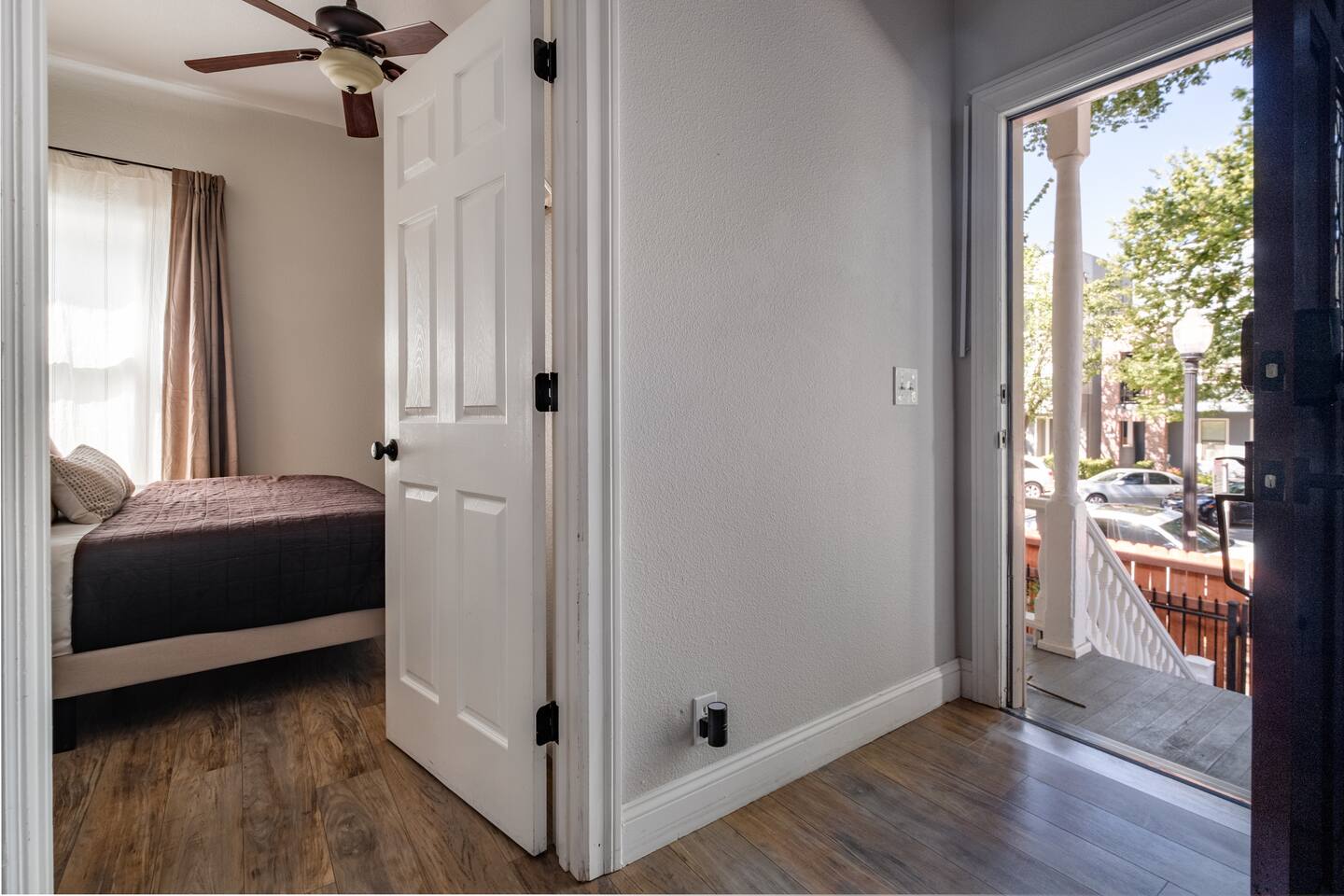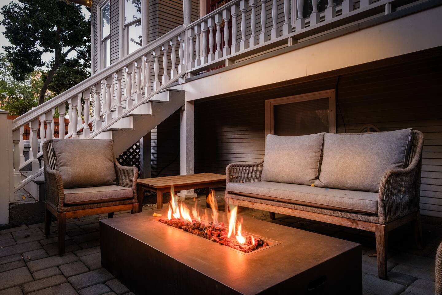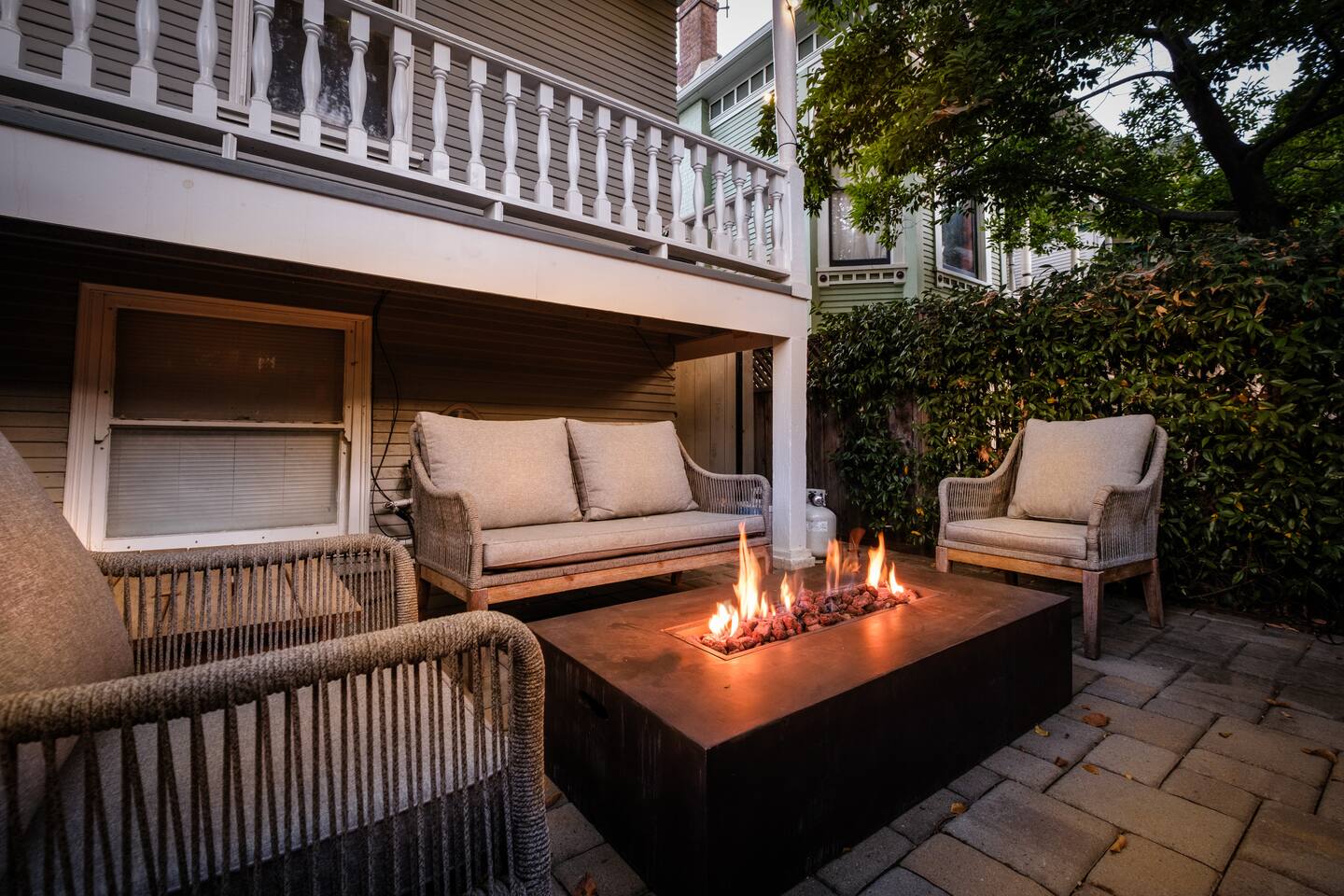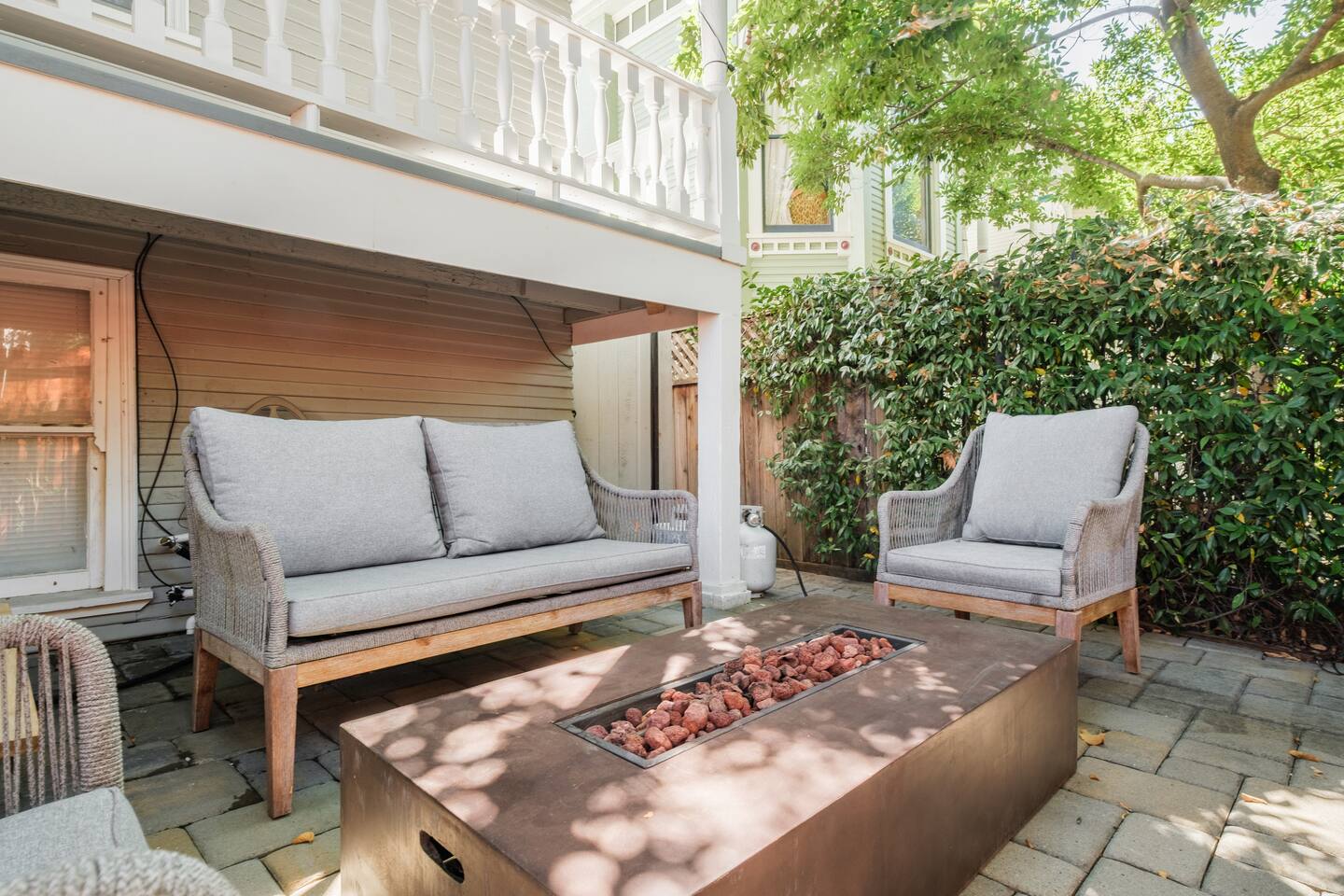 A rare piece of Sacramento history — reimagined for modern comfort. 📍 The Neighborhood Located in Alkali Flat—Sacramento’s oldest residential neighborhood This lovingly restored Edwardian home sleeps 6 guests and sits behind a newly gated wood fence, offering rare privacy in the center of Sacramento’s Historic District. DETAILS: 🛏️ Sleeps 4-6 Comfortably Across 2 Bedrooms + 1 Dual living/ sleeping area (King, Queen Sofa Bed, King ) - Primary and Secondary Bedrooms – Retreat to a King-size hybrid gel bed with medium firmness , black out curtains and each includes a smart TV so you can easily log in and stream your favorite shows—just like home. - Living Room – Our Queen size sofa sleeper easily transforms into an extra bed, ideal for teens, tag-along guests, or that unexpected snooze after a movie night. _______________________________________________________________ Little Luxuries: Every bedroom — plus the living room — features a 55-inch smart TV with full app access so you can stream your favorite shows and movies with your own login. You’ll also enjoy complimentary channels and films via preloaded apps. For optimal comfort, all bedrooms are outfitted with blackout curtains, a sound soother, amber colored adjustable night lights — making it easy to rest well in any season. And Yes, we have a bidet. Because you deserve to feel fresh and just a little extra. ______________________________________________________________ 🪞 Bathroom: The bathroom is quaint but functional, with a classic shower/tub combo and everything you need to feel at home. We’ve included an over-the-sink fold-out mat to give you extra space for styling tools, makeup, or your morning routine - We provide toiletries + feminine products, body towels, wash clothes and face clothes for removing make up. ______________________________________________________________ 🍽 Kitchen Amenities: - Gas stove, oven & microwave - Fridge/freezer (water hookup — filtered water dispenser+ ice cube dispenser) - Cooking oil & basic spices - Complimentary coffee: pods and grounds (brew with Keurig or Drip ☕) Little extras: Froth capabilities for cappuccinos and lattes — just bring your favorite creamer, we provide the sugar and honey ! ______________________________________________________________ 🪑 Dining Area: - 6 seater wood dining table and features a Lazy Susan—making group meals, snacks, or family-style game table— exciting! ______________________________________________________________ Our cozy coffee + tea bar isn’t just for humans—we thought of your furry friends too! Help yourself to K-Cups, ground coffee for pour-over mornings, and a small selection of teas, complete with sugar and honey Your pup? They’ll wake up to snacks + water and food bowl Barista vibes for you. Barkista vibes for them. 🐶☕ _______________________________________________________________ 🔒 Smart & Safe Tech Features: Schlage Smart Lock – keyless entry made simple The home is fully enclosed by a newly constructed wooden fence for added privacy, and features a smart lock with custom code entry for effortless, secure check-ins. Noise + Air Monitoring – smart sensors detect smoke, CO₂ & noise wave length past certain decibel 24-Hour Exterior Cameras – one on Ring doorbell (No interior cameras – your privacy is fully respected) Fire Safety & First Aid Supplies – extinguishers, fire blankets, first air kit all under the kitchen sink. _______________________________________________________________