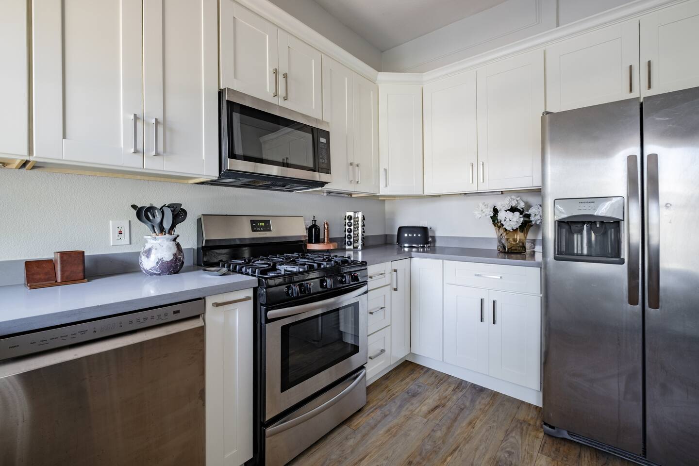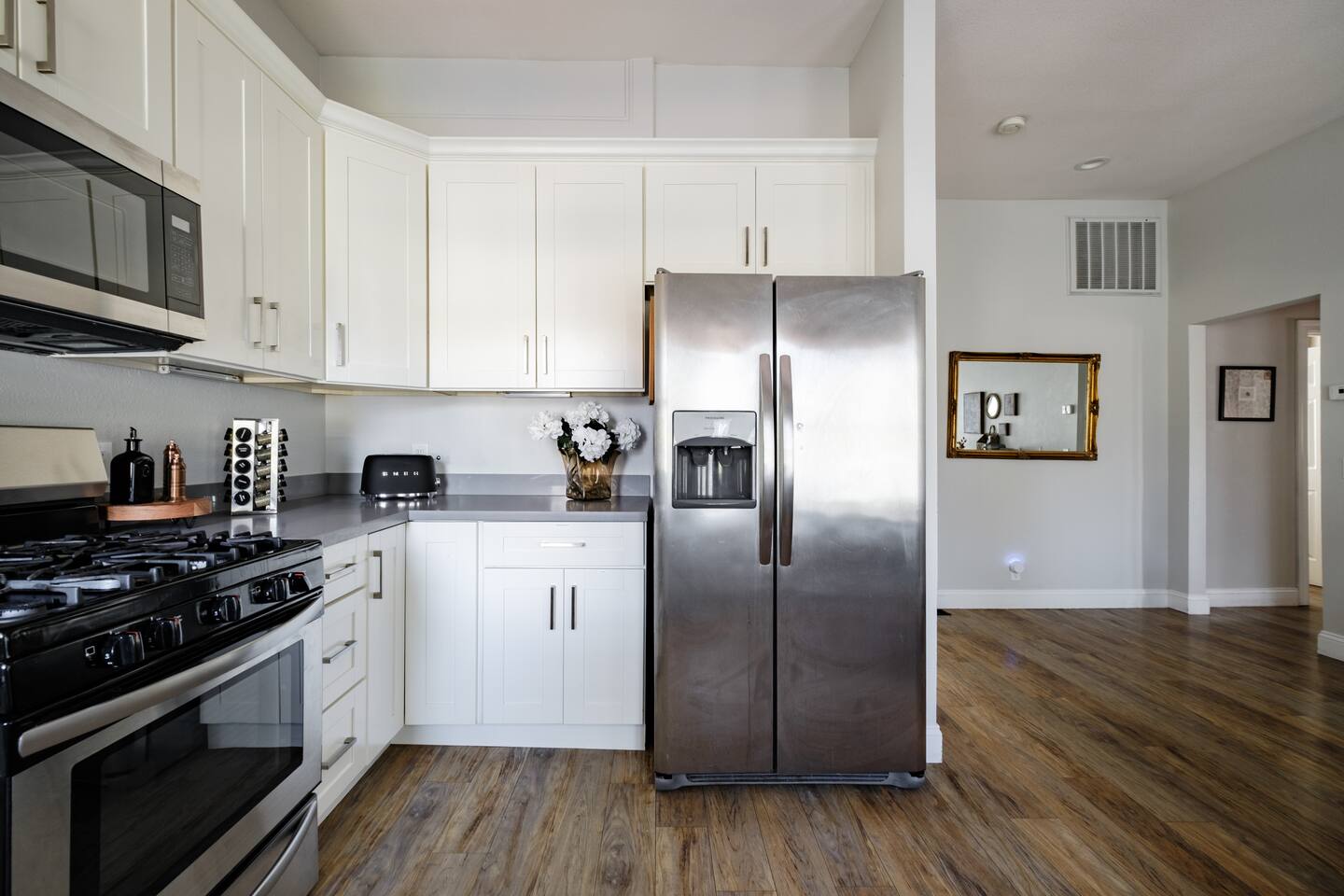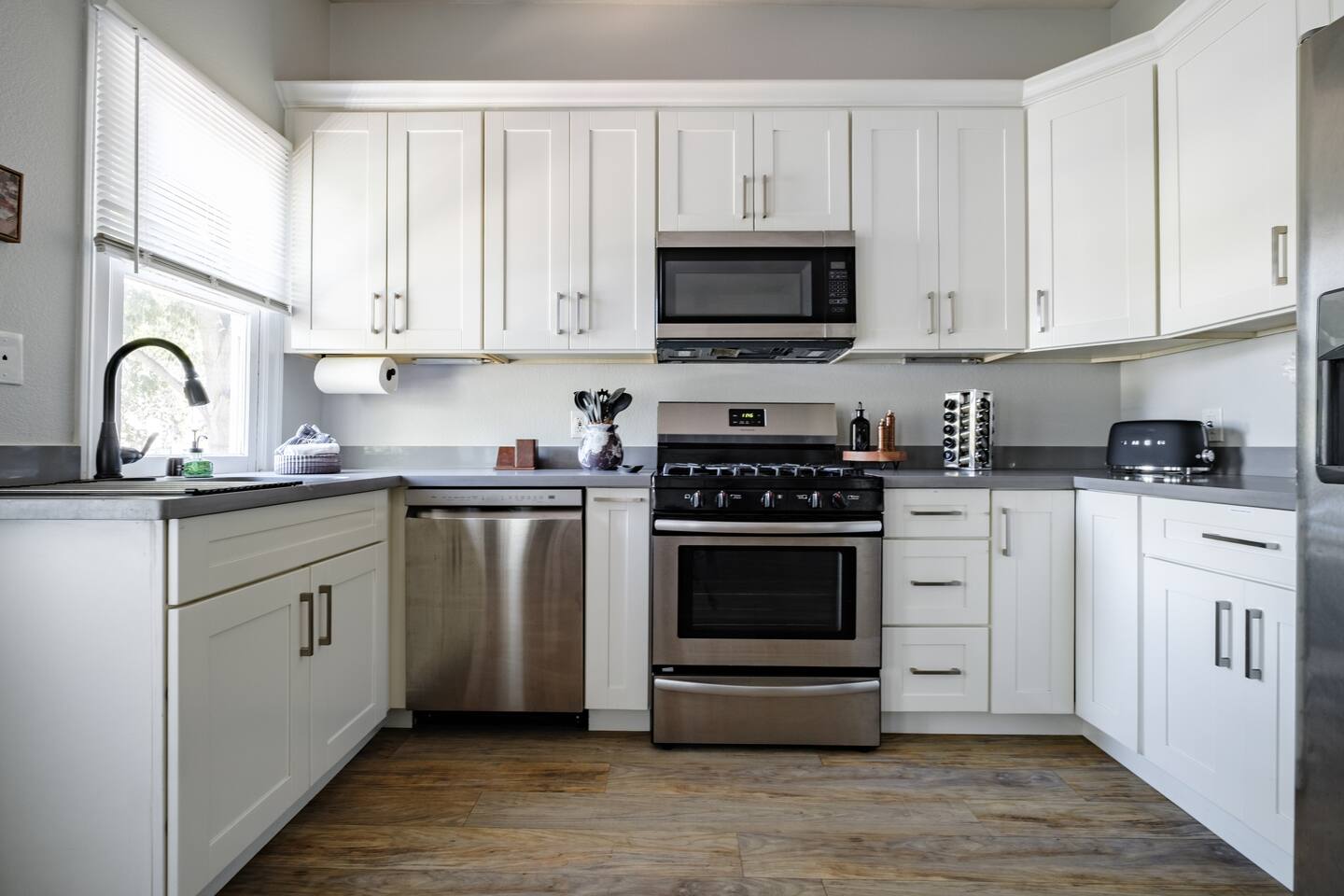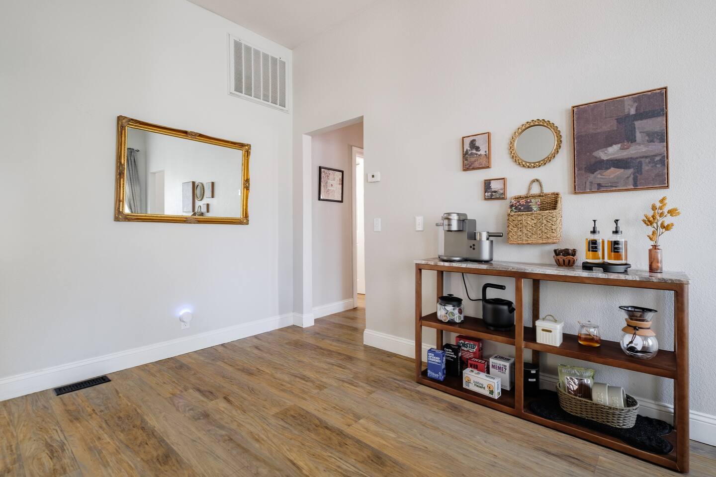 A rare piece of Sacramento history — reimagined for modern comfort. 📍 The Neighborhood Located in Alkali Flat—Sacramento’s oldest residential neighborhood This lovingly restored Edwardian home sleeps 6 guests and sits behind a newly gated wood fence, offering rare privacy in the center of Sacramento’s Historic District. DETAILS: 🛏️ Sleeps 4-6 Comfortably Across 2 Bedrooms + 1 Dual living/ sleeping area (King, Queen Sofa Bed, King ) - Primary and Secondary Bedrooms – Retreat to a King-size hybrid gel bed with medium firmness , black out curtains and each includes a smart TV so you can easily log in and stream your favorite shows—just like home. - Living Room – Our Queen size sofa sleeper easily transforms into an extra bed, ideal for teens, tag-along guests, or that unexpected snooze after a movie night. _______________________________________________________________ Little Luxuries: Every bedroom — plus the living room — features a 55-inch smart TV with full app access so you can stream your favorite shows and movies with your own login. You’ll also enjoy complimentary channels and films via preloaded apps. For optimal comfort, all bedrooms are outfitted with blackout curtains, a sound soother, amber colored adjustable night lights — making it easy to rest well in any season. And Yes, we have a bidet. Because you deserve to feel fresh and just a little extra. ______________________________________________________________ 🪞 Bathroom: The bathroom is quaint but functional, with a classic shower/tub combo and everything you need to feel at home. We’ve included an over-the-sink fold-out mat to give you extra space for styling tools, makeup, or your morning routine - We provide toiletries + feminine products, body towels, wash clothes and face clothes for removing make up. ______________________________________________________________ 🍽 Kitchen Amenities: - Gas stove, oven & microwave - Fridge/freezer (water hookup — filtered water dispenser+ ice cube dispenser) - Cooking oil & basic spices - Complimentary coffee: pods and grounds (brew with Keurig or Drip ☕) Little extras: Froth capabilities for cappuccinos and lattes — just bring your favorite creamer, we provide the sugar and honey ! ______________________________________________________________ 🪑 Dining Area: - 6 seater wood dining table and features a Lazy Susan—making group meals, snacks, or family-style game table— exciting! ______________________________________________________________ Our cozy coffee + tea bar isn’t just for humans—we thought of your furry friends too! Help yourself to K-Cups, ground coffee for pour-over mornings, and a small selection of teas, complete with sugar and honey Your pup? They’ll wake up to snacks + water and food bowl Barista vibes for you. Barkista vibes for them. 🐶☕ _______________________________________________________________ 🔒 Smart & Safe Tech Features: Schlage Smart Lock – keyless entry made simple The home is fully enclosed by a newly constructed wooden fence for added privacy, and features a smart lock with custom code entry for effortless, secure check-ins. Noise + Air Monitoring – smart sensors detect smoke, CO₂ & noise wave length past certain decibel 24-Hour Exterior Cameras – one on Ring doorbell (No interior cameras – your privacy is fully respected) Fire Safety & First Aid Supplies – extinguishers, fire blankets, first air kit all under the kitchen sink. _______________________________________________________________