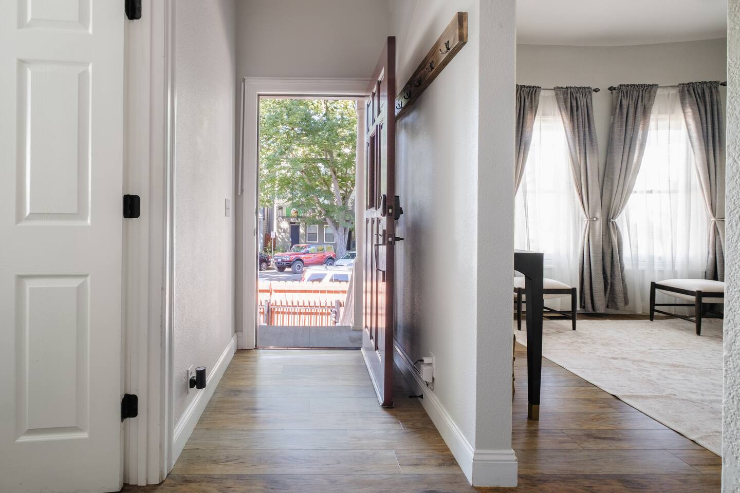 Guest has access to the entire space | one storage closet is restricted. 🏛 The Residence A beautifully restored Edwardian home, thoughtfully divided into two private addresses. Your home occupies the 11th street side of the building , within a gated fence offering elevated views and a sense of privacy. 🔑 Entry Your stay begins with keyless entry via a secure smart lock — a unique access code will be provided at check-in for your convenience. 🚶 Stairs: As with many historic homes, stairs are part of the charm: - about 10 steps total from the ground level to the main floor 🚗 Parking: - Free Street parking available in the front of the home surrounding neighborhood (check posted signage for restrictions)