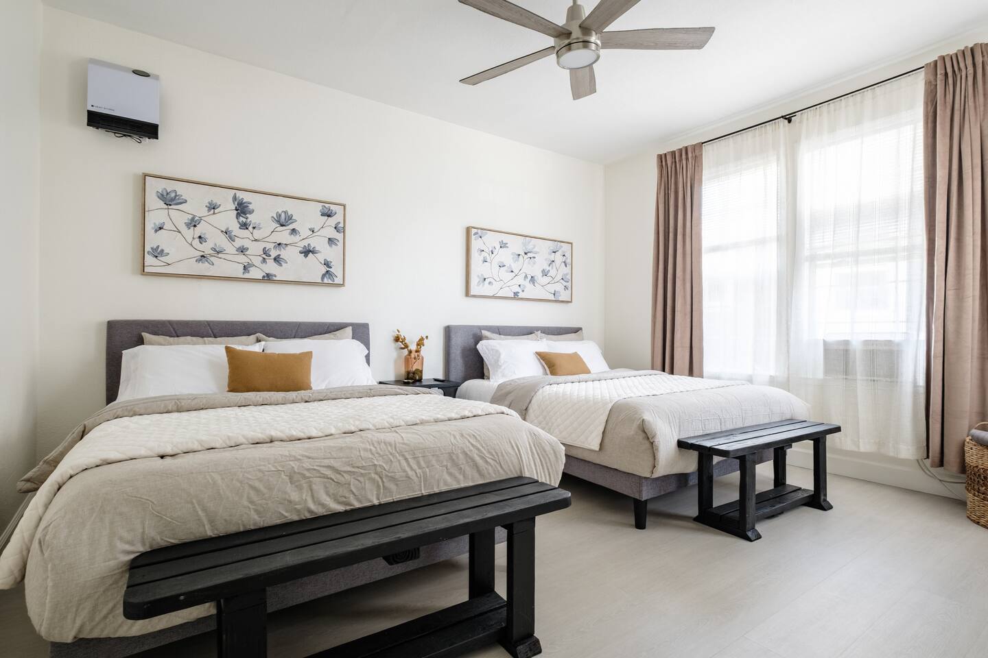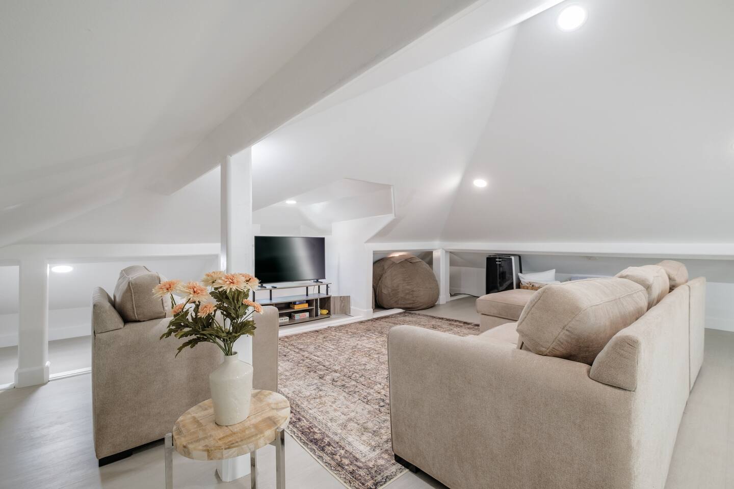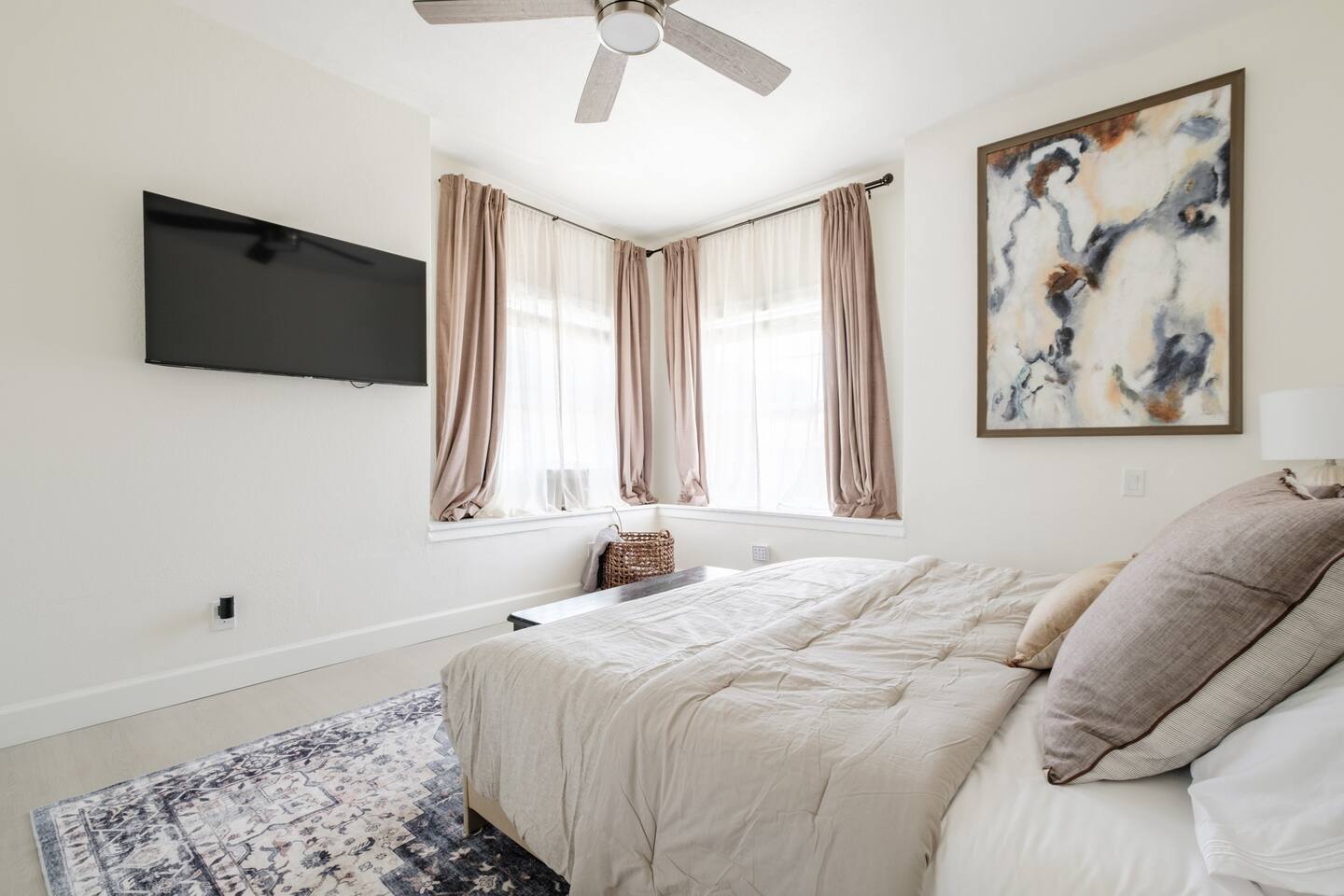 📍 The Neighborhood: This street has been welcoming travelers for over 170 years. While the home itself stands as a beautifully preserved piece of local history, the surrounding area has grown into a thriving Urban hub—alive with culture, diversity, and momentum. On any given day, you might hear the hum of streetcars, pass by a mural in progress, or stumble upon a pop-up art market or food truck event. You’re just a few blocks from Notre Dame HS, SJSU, the SoFA Arts District, and some of the city's best coffee shops, craft breweries, and global eats. DETAILS: 🛏️ Sleeps 10-12 Comfortably Across 3 Bedrooms + 2 Bonus Spaces (King, Queen & Queen, King, Sofa Bed, King Plush Floor Mattress) - Primary and Secondary Bedrooms – Retreat to a King-size hybrid gel bed, black out curtains and includes a smart TV so you can easily log in and stream your favorite shows—just like home. - Double-Up Room – Modern toned room features two Queen-size hybrid gel beds —perfect for couples, co-workers or friends sharing the space. - Living Room converted from attic to Loft area – Our sofa sleeper easily transforms into an extra bed, ideal for teens, tag-along guests, or that unexpected snooze after a movie night. Tucked away in a cozy nook of the loft, you’ll find a King Plush Floor Mattress—perfect for an extra guest who deserves far better than an air mattress. ________________________________________________________________________________________________ Little Luxuries: Every bedroom — plus the loft — features a 50-inch smart TV with full app access so you can stream your favorite shows and movies with your own login. You’ll also enjoy complimentary channels and films via preloaded apps. For optimal comfort, all bedrooms are outfitted with blackout curtains, a sound soother, an AC window unit, and an electric heater — making it easy to rest well in any season. Dedicated Workspace – Primary Bedroom Need to get some work done? The primary bedroom includes a dedicated desk, notepad, and a curated set of mini office supplies — blending productivity with style. ________________________________________________________________________________________________ 🚿 Bathrooms: Standalone showers with modern finishes. Large mirrors and a skylight above, toiletries + feminine products provided, body towels, wash clothes and face clothes for removing make up. ________________________________________________________________________________________________ 🍽 Kitchen Amenities: - Electric stove, oven & microwave - Brand-new fridge/freezer (no water hookup — filtered water dispenser + some ice cubes provided) - Cooking oil & basic spices - Complimentary coffee: pods and grounds (brew with Keurig, Drip, or French press ☕) Little extras: Froth capabilities for cappuccinos and lattes — just bring your favorite creamer! ________________________________________________________________________________________________ 🪑 Dining Area: - Solid wood dining table that seats 8 — perfect for shared meals - Door can be closed to double as a co-working space - AC and heating unit included ________________________________________________________________________________________________ 🔒 Smart & Safe Tech Features: Schlage Smart Lock – keyless entry made simple Noise + Air Monitoring – smart sensors detect smoke, CO₂ & noise wave length past certain decibel 24-Hour Exterior Cameras – one on Ring doorbell (No interior cameras – your privacy is fully respected) Fire Safety & First Aid Supplies – extinguishers, fire blankets under the kitchen sink. First Aid Kit in bathroom drawer ________________________________________________________________________________________________ 🅿️ Parking Information You are assigned one parking spot in the front driveway. If you need additional parking, please use the City of San José public parking lot located one block away at First Street & I-280. City Lot Details (630 S First St, under I-280): 💵 Rate: $5/day on weekdays 🕕 Free: After 6:00 pm on weekdays, and all day on weekends & holidays 🕓 Hours: Open 24/7 🚫 Note: No parking over 72 hours (max 3 days) 💳 Monthly option on your own: $50/month (ParkSJ) Please be mindful of the sidewalk and neighbors when parking in the driveway. It’s acceptable for the rear of your vehicle to slightly extend past the driveway edge, as long as it does not stick out beyond the line of parked cars along the curb — this keeps your car protected from traffic. _________________________________________________________________________________________________ 🎉 Upcoming Events & Attractions (2025–2027) (San Jose & Nearby) 1. 📍 SAP Center at San Jose Distance: 8 min drive / 20 min walk “The Shark Tank” — home of the NHL San Jose Sharks 🏒 plus concerts 🎶, comedy shows, and family events year-round. 2. 🎷 San Jose Jazz Summer Fest (August) World-class jazz, R&B, and Latin performances across multiple stages downtown. 3. 🎭 San Jose Civic Historic live venue for concerts, theater, and cultural events — walking distance from Ol’ Vic. 4. 🎉 FanimeCon (Memorial Day Weekend) Northern California’s largest anime convention at the McEnery Convention Center — cosplay, gaming, panels, and more. 5. San Jose Holiday Parade & Downtown Ice (December) Festive parade plus seasonal ice rink at Circle of Palms. ________________________________________________________________________________________________ Live Like a Local: - San Pedro Square Market (5-min drive / 15-min walk) Indoor-outdoor dining hall with food stalls, bars, live music, and coffee shops. -Plaza de César Chávez (10-min walk) Central park for outdoor concerts, art events, and festivals. - Santana Row (15-min drive) Upscale shopping, dining, and nightlife. - Japantown San Jose (10-min drive) Historic neighborhood with authentic cuisine, markets, and cultural events. -San Jose Museum of Art & The Tech Interactive (